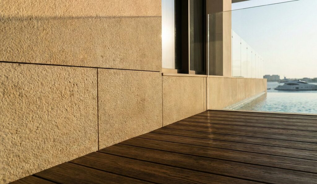 This process fundamentally alters its molecular structure. It removes hemicelluloses (wood sugars), which eliminates the food source for fungi and insects. It reduces the material’s equilibrium moisture content, making it dimensionally stable and resistant to warping by over 50%. This isn’t a coating; it’s a permanent transformation of the material itself. For exterior facades, we use large-format sintered stone slabs (e.g., Neolith, Dekton). These are created by fusing natural minerals under immense heat and pressure, mimicking the geological process of rock formation. The resulting material has near-zero porosity. It cannot stain. Its mineral-based pigments are UV-stable and will not fade. It is impervious to salt spray and thermal shock.